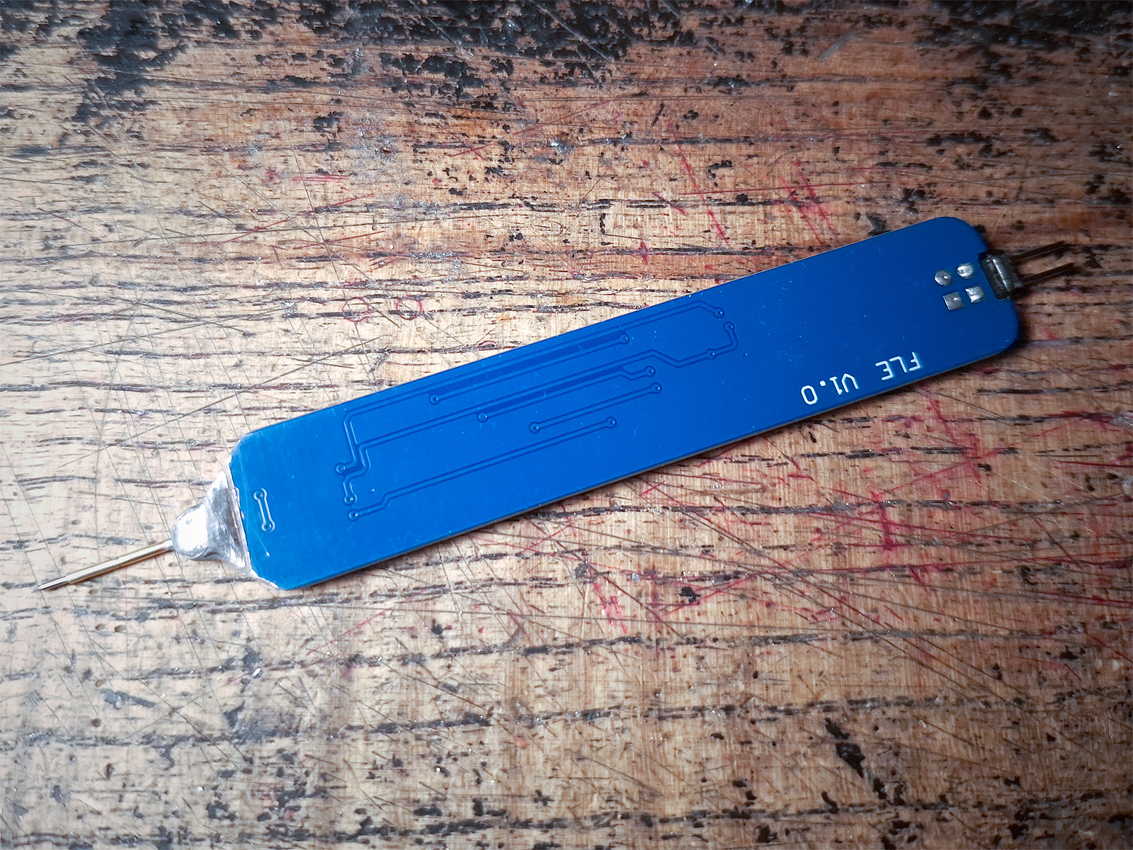 A třetí byl fakt, že měřicí hrot, tvořený pogo pinem, je pájený v ploše na horní straně PCB bez toho, že by tato ploška byla jakkoli posílená (čekal bych tam sérii prokovů a provázání se spodní vrstvou), takže je zapotřebí se k hrotu chovat slušně, jinak hrozí, že se od desky odloupne i s vrstvou mědi.